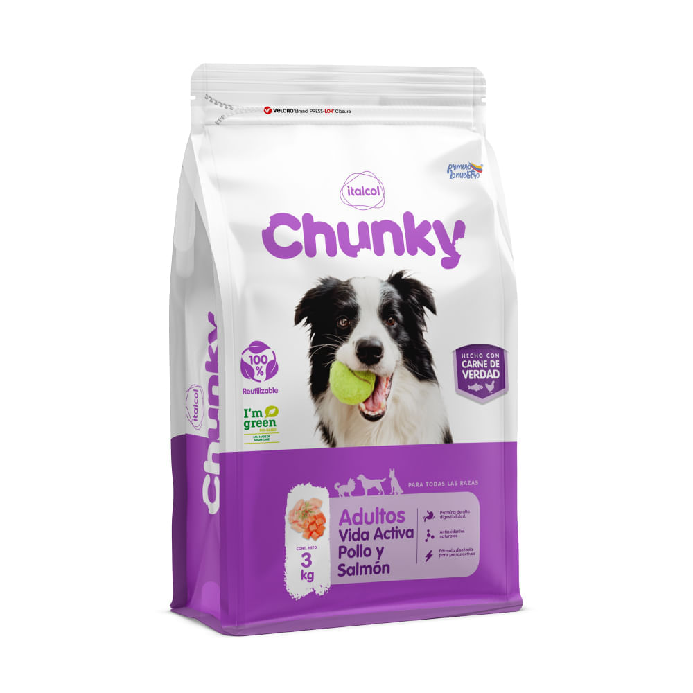 Contribuye al desarrollo general del perro con proteínas de alta calidad.; Fortalece el sistema inmunológico gracias a su contenido de vitaminas, minerales y beta-glucanos.; Favorece la salud digestiva y la estabilidad del tracto gastrointestinal.; Incluye prebióticos como manano-oligosacáridos que mejoran el equilibrio intestinal.; Formulado con salmón, pollo y arroz para una mayor palatabilidad y digestibilidad.