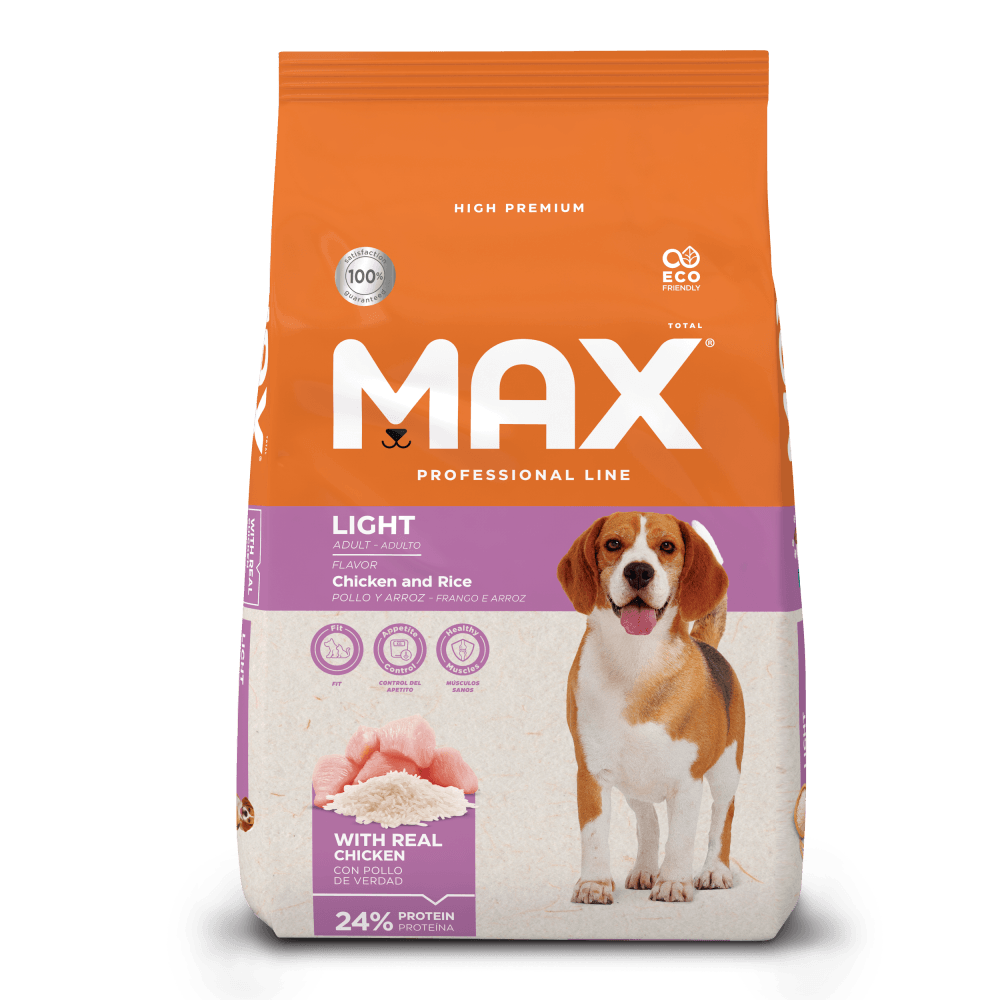 Descripción | El control y la prevención de la obesidad son fundamentales para el bienestar y la salud de los perros. Max Light Pollo & Arroz, es un alimento Premium Especial, cuidadosamente elaborado para el control del peso en perros adultos. Su formulación posee el equilibrio ideal de fibras, grasa y proteínas, conteniendo todos los nutrientes necesarios para mantener a los perros sanos y en buena forma. Además, cuenta con L-Carnitina, que ayuda en la pérdida y control del peso en perros adultos.