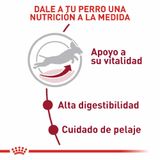 Soporte de vitalidad: contenido de nutrientes adaptado para ayudar a mantener la vitalidad de los perros medianos que afrontan los primeros signos de la edad. Contiene un complejo de antioxidantes exclusivo que ayuda a neutralizar a los radicales libres.; Tolerancia digestiva: ayuda a promover una óptima tolerancia digestiva gracias a una fórmula exclusiva que incluye proteínas de elevada calidad y un aporte equilibrado de fibras alimentarias.; Estado del pelaje: esta fórmula contiene nutrientes que ayudan al mantenimiento de la piel y pelo saludables. Enriquecido con EPA-DHA.