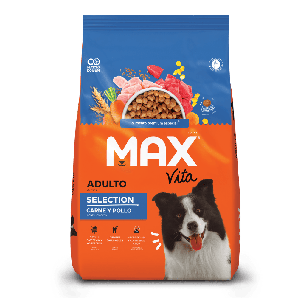 | Descripción | Max Vita es un alimento balanceado para perros adultos de razas medianas y grandes, formulado con el sello VITA COMPLEX que garantiza una nutrición completa y equilibrada para el bienestar diario de tu mascota.; Beneficios.; 1. Contiene prebióticos y extracto de yuca que ayudan a reducir el olor de las heces y favorecen una digestión saludable.; 2. Aporta niveles adecuados de proteína y Omega 6 para el mantenimiento de una piel sana y un pelaje brillante.; 3. La crocancia del alimento contribuye a la reducción de la formación de sarro y apoya la limpieza dental.; Ingredientes.; Harina de vísceras de ave (2 %), harina de carne y hueso (2 %), maíz integral molido**, germen de maíz desgrasado**, salvado de gluten de maíz**, salvado de trigo, salvado de soja*, grasa de pollo, espinaca deshidratada, zanahoria deshidratada, linaza integral molida, fosfato bicálcico, cloruro de sodio, cloruro de potasio, extracto de yuca (0,025 %), hexametafosfato de sodio, cloruro de colina, propionato de calcio, aditivo prebiótico (0,3 %), palatabilizante a base de hígado de pollo, vitaminas y minerales.; Composición.; Humedad (máx.) 12 %, proteína bruta (mín.) 21 %, extracto etéreo (mín.) 8 %, fibra cruda (máx.) 5 %, cenizas (máx.) 10 %, calcio (mín.) 0,9 % y (máx.) 2 %, fósforo (mín.) 0,8 %, sodio (mín.) 0,35 %, potasio (mín.) 0,5 %, mananoligosacáridos (mín.) 0,036 %, Omega 6 (mín.) 2 %.; Modo de uso.; Alimento balanceado indicado para perros adultos de razas medianas y grandes.; Servir la ración diaria recomendada según el peso y nivel de actividad.; Almacenar en un lugar fresco y seco.; Consulte al médico veterinario. |