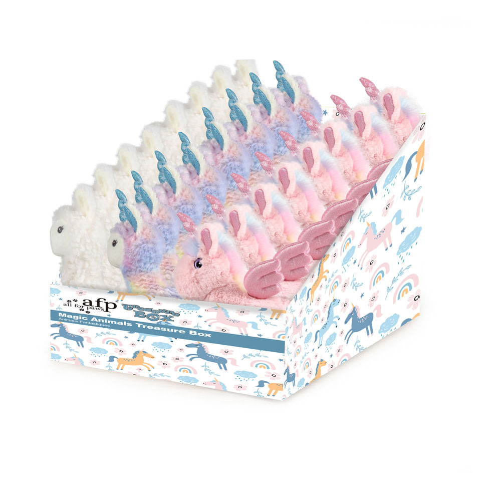 Set de 24 juguetes de peluche para perros con diseños de animales mágicos, creado para ofrecer entretenimiento variado y estimulación sensorial. Cada pieza incorpora un pito interno que emite sonido al presionarlo, captando la atención del perro y prolongando su interés durante el juego.; Beneficios.; Estimula la actividad física y mental; Reduce el aburrimiento y la ansiedad por inactividad; Promueve el juego de perseguir, morder y cargar; Ofrece variedad de estímulos para mantener el interés por más tiempo.; Características.; Incluye 24 juguetes surtidos con diseños coloridos y atractivos; Cada unidad incorpora pito interno que incentiva la interacción; Caja contenedora con dimensiones aproximadas de 32,5 × 32 × 25 cm, ideal para almacenamiento y exhibición.; Material.; Fabricados en peluche y chenille suave y resistente, utilizando materiales no tóxicos aptos para mascotas.