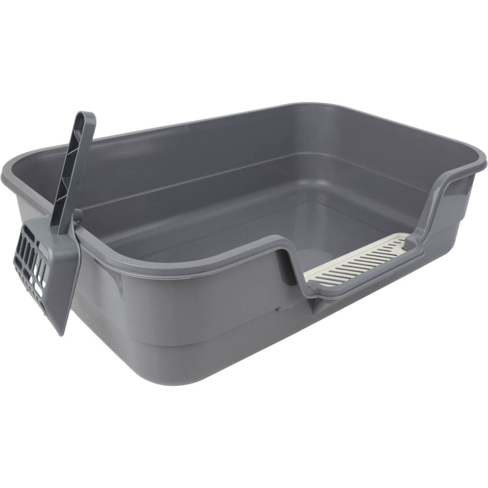 Arenero con Pala 60×40×15 cm Gris PAWISE Arenero práctico y funcional diseñado para brindar comodidad a tu gato y facilitar la limpieza diaria. Incluye pala a juego y un diseño amplio que ayuda a mantener la arena dentro, ofreciendo un espacio higiénico y confortable para tu mascota.