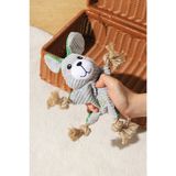 Juguete interactivo para cachorros y perros pequeños con chirriador, diseñado para estimular el juego mientras contribuye al cuidado del medio ambiente. Fabricado con materiales reciclados, ofrece una combinación de texturas que favorecen la interacción y el entretenimiento.; Beneficios.; Estimula la actividad física y mental; Ideal para cachorros y perros pequeños; Mantiene al perro entretenido por más tiempo; Contribuye al cuidado del medio ambiente.; Características.; Incorpora chirriador que incentiva el juego; Diseño suave y ligero para fácil manipulación; Fabricado con 99 % de botellas de plástico recicladas; Incluye combinación de materiales que enriquecen la experiencia de juego; Dimensiones aproximadas de 30 × 22 × 5 cm.; Material.; Superficie de felpa corta combinada con goma y yute, con relleno de PP reciclado, materiales seguros y diseñados para uso frecuente.
