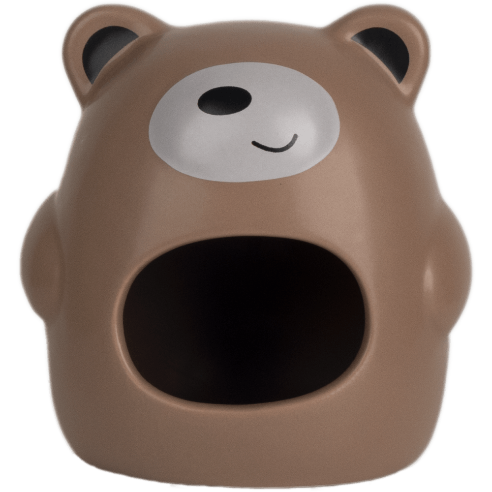 Casa refugio para pequeños roedores con diseño tipo oso piedra, ideal para ofrecer un espacio seguro, cómodo y protegido dentro del hábitat. Su estructura cerrada permite que la mascota descanse, se esconda y se sienta tranquila, favoreciendo su bienestar y comportamiento natural.; Beneficios.; Proporciona un espacio seguro para descanso y refugio; Ayuda a reducir el estrés y la ansiedad; Fomenta el comportamiento natural de esconderse; Aporta confort dentro del hábitat.; Características.; Diseño compacto que se adapta fácilmente a jaulas y espacios reducidos; Entrada amplia que permite acceso cómodo y seguro; Superficie lisa que facilita la limpieza; Dimensiones aproximadas de 11 × 10 × 12 cm, ideal para hámsters, ratones y otros pequeños roedores.; Material.; Fabricado en cerámica resistente y segura para mascotas, fácil de limpiar y mantener en condiciones higiénicas.