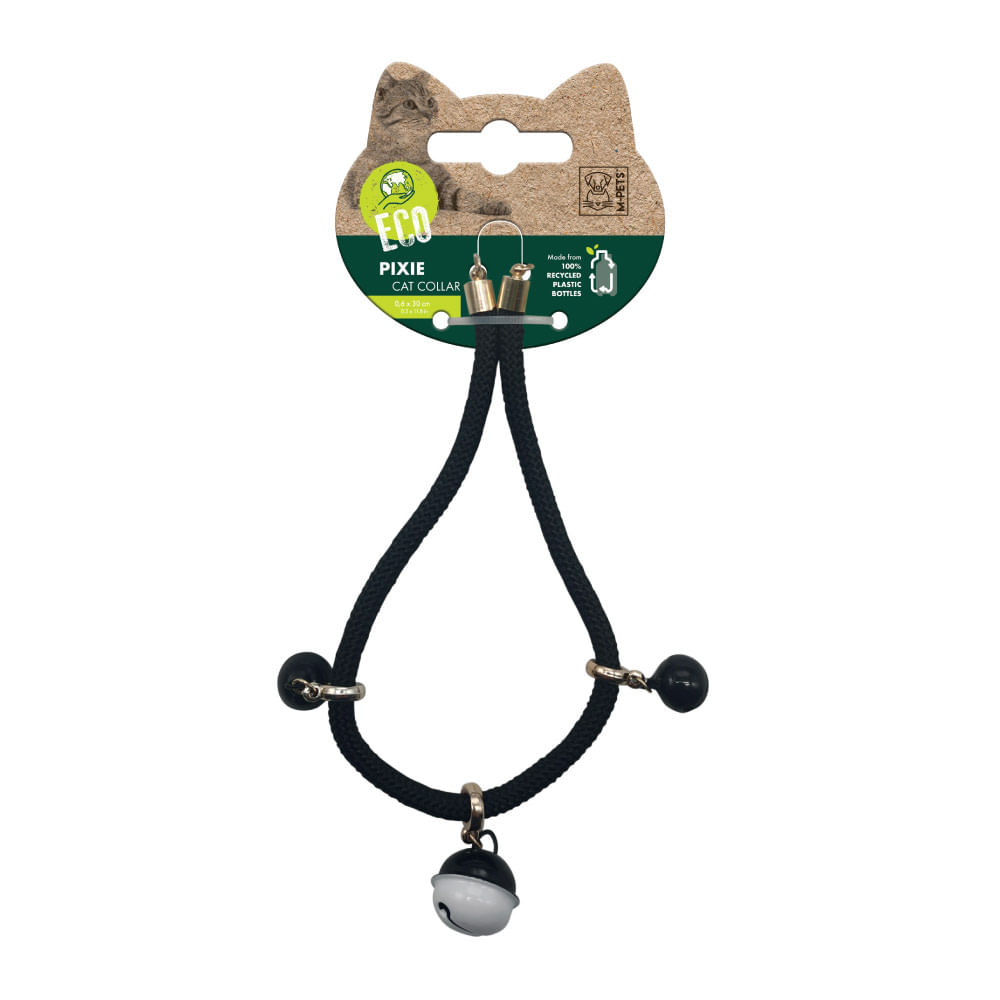 Collar ajustable para gatos – 0,6 cm x 30 cm. Elaborado a partir de botellas recicladas recolectadas del océano, combina sostenibilidad con resistencia. Ofrece una tracción de 4 a 12 libras y un diseño ajustable, ideal para todas las etapas de la vida del gato, desde gatito hasta adulto mayor. Incorpora sistema de seguridad con liberación automática (breakaway) y un cascabel brillante que genera un sonido elegante mientras el gato está activo, además de advertir a aves y pequeños animales. El cascabel puede retirarse fácilmente según la necesidad.;Material: RPET (plástico reciclado), aluminio, cobre