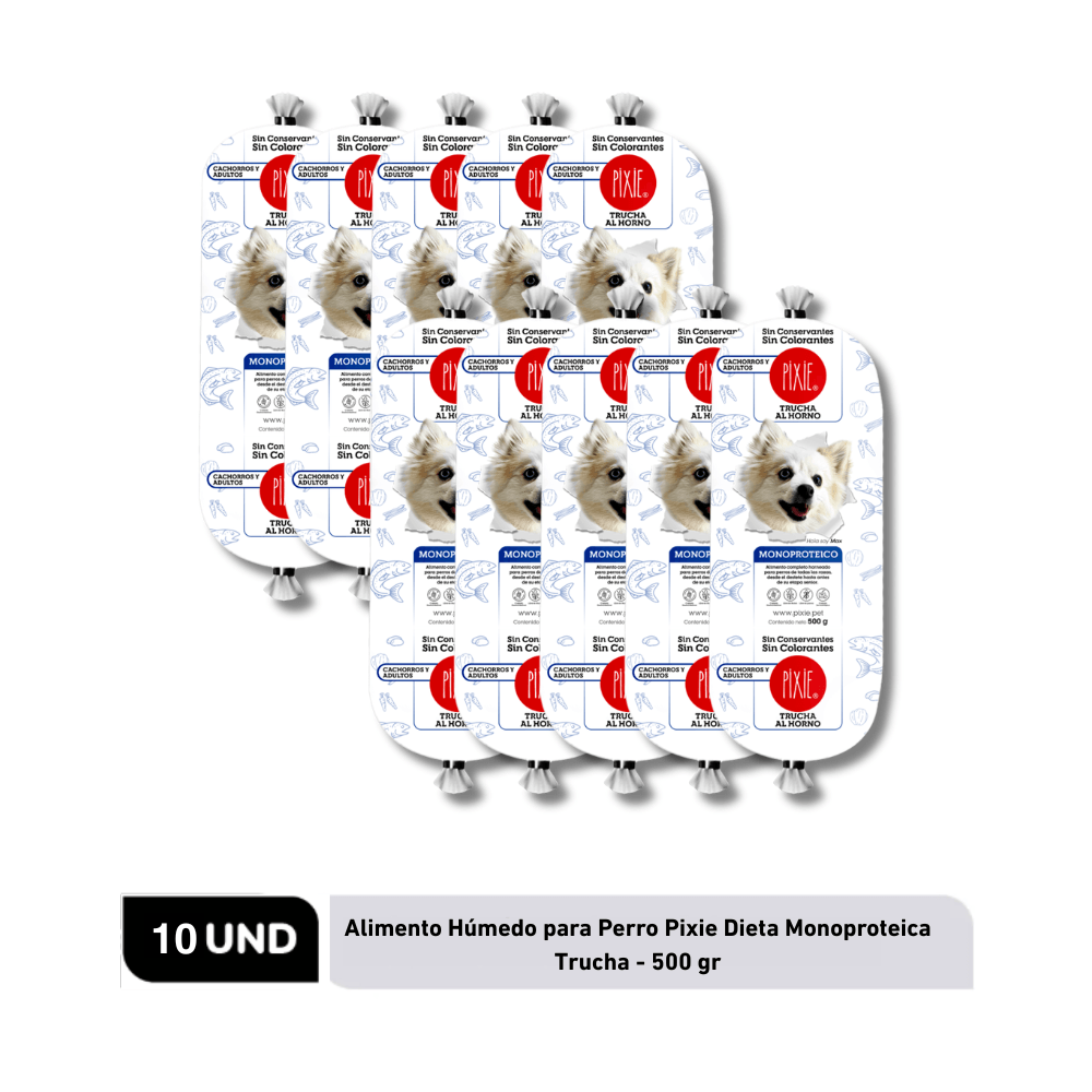 Combo Alimento Húmedo para Perro Pixie Dieta Monoproteica Trucha x10 - 10 Un
