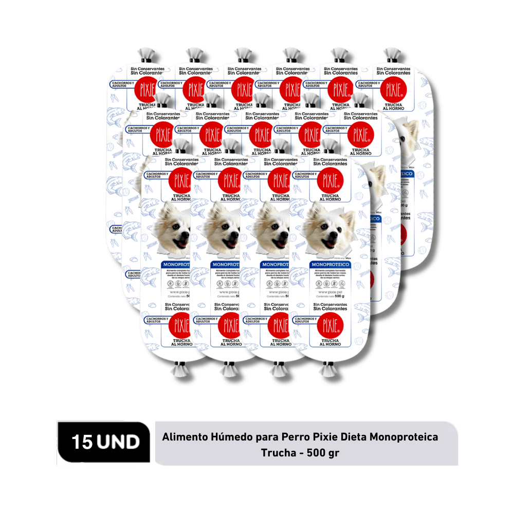 Combo Alimento Húmedo para Perro Pixie Dieta Monoproteica Trucha x15 - 15 Un
