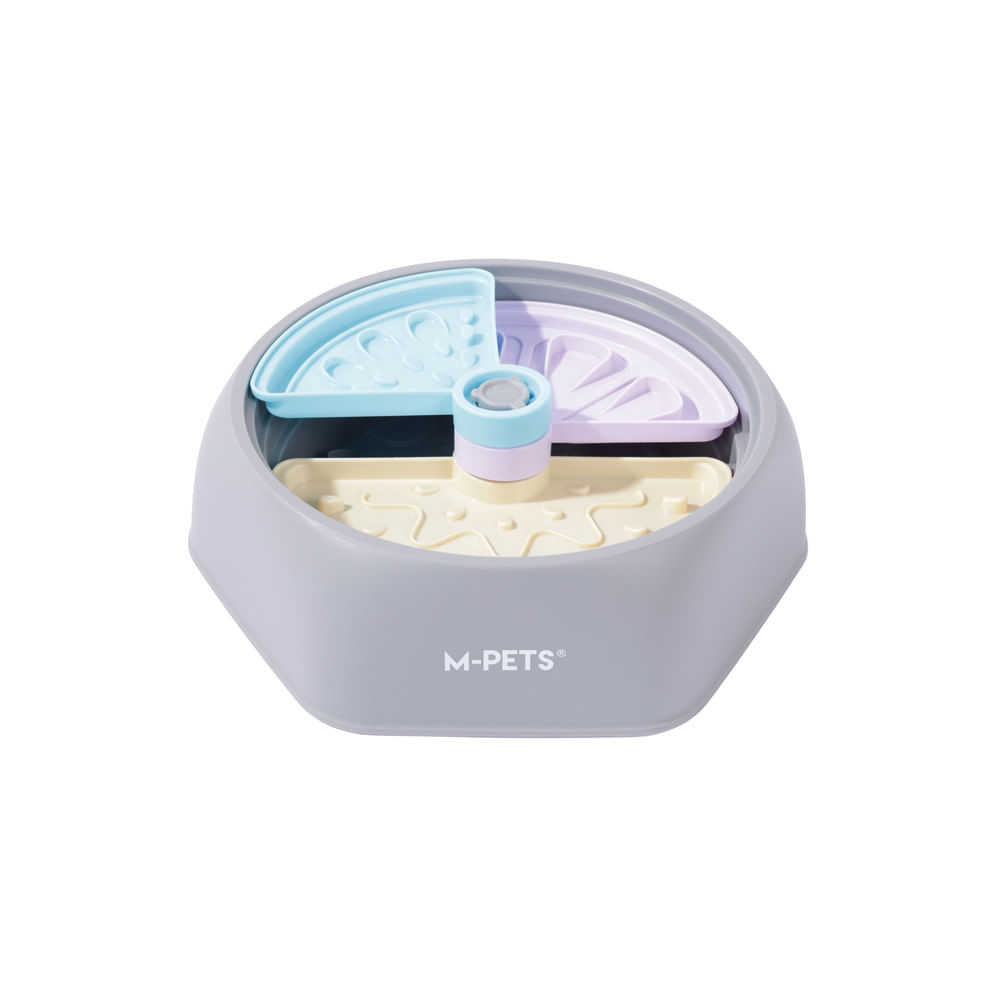 Plato interactivo de alimentación lenta diseñado para prolongar el tiempo de comida y favorecer una mejor digestión.; Su estructura estimula la actividad mental y ayuda a reducir el estrés y el aburrimiento durante la alimentación.; Medidas:; 29.8 × 29.8 × 8.6 cm.; Beneficios:; Prolonga el tiempo de comida hasta 16 veces.; Incluye 3 bandejas desmontables para facilitar la personalización y limpieza.; Ofrece 4 modos de alimentación con distintos niveles de dificultad.; Estimula el cerebro y reduce la ansiedad.; Compatible con alimento seco, húmedo y crudo.; Ventosas de silicona de alta resistencia para mayor estabilidad.; Apto para lavavajillas y congelador.; Fabricado con materiales seguros y duraderos.; Material:; PP, nylon, POM y silicona.