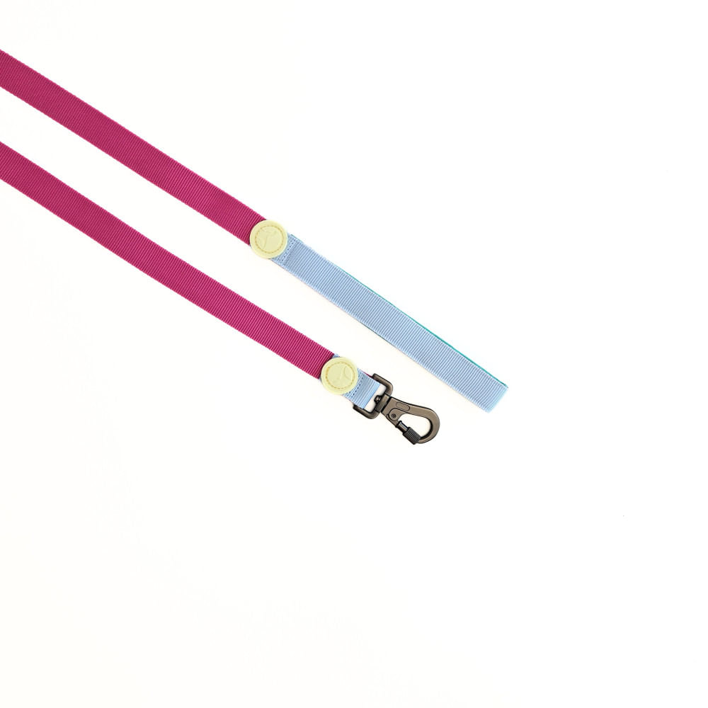 Correa reforzada Magenta Muse de poliéster para perros.; Pensada para acompañar paseos activos con comodidad y estilo.; Fabricada en poliéster súper resistente con terminaciones reforzadas y doble logo de goma que protege las costuras y extiende la vida útil del producto.; Su gancho giratorio 360° tipo alpinista, hecho en metal de alta resistencia, garantiza una conexión firme y sin torsiones con arnés o collar, ideal para perros inquietos.; El asa ergonómica con recubrimiento de neopreno negro ofrece un agarre suave y seguro, incluso en caminatas prolongadas.; Medidas disponibles: S ancho 1.5 cm × 120 cm largo.; L ancho 2.5 cm × 120 cm largo.; Una correa resistente y funcional que suma estilo y confort al paseo diario.; Material: poliéster.; Contraindicaciones: de uso exclusivo para mascotas.; el producto debe retirarse de uso si es mordido o ingerido por la mascota.; vigilar a la mascota mientras use el accesorio.