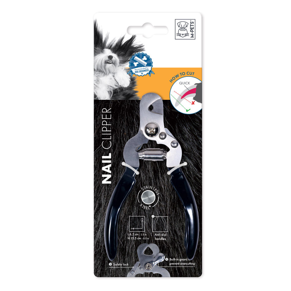 Cortaúñas con mecanismo de seguridad (13,5 x 6,5 x 2 cm) - Cuenta con mango antideslizante que ofrece un agarre firme.; Incluye seguro de bloqueo para mayor protección.; Dispone de protector incorporado que evita cortes excesivos.; Ideal para cuidar las patas del perro fácilmente gracias al mecanismo que limita el corte.; El sistema de seguridad previene cortar demasiado.; Material: acero inoxidable - PVC.