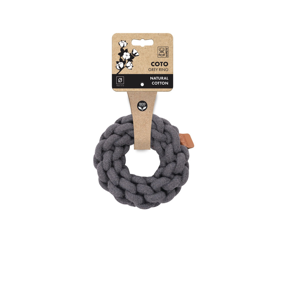 Anillo de cuerda fabricado en algodón de alta calidad, resistente y seguro para el juego diario.; Compacto y duradero, es ideal para juegos de masticación, recuperación y tira y afloja.; Contribuye al desarrollo mental y favorece la salud bucal al ayudar a remover residuos mientras el perro mastica.; Tallas disponibles:; 13 × 13 × 5 cm.; 18 × 18 × 5 cm.; Ø 5 × 25 cm, peso 425 g.; Beneficios:; Material resistente y ecológico.; Ideal para juegos interactivos.; Apoya la higiene dental.; Apto para perros de todas las edades.; Material:; Algodón.
