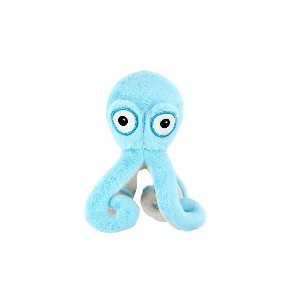 Juguete interactivo para perros con diseño de pulpo que incorpora un chirriador ultrasónico silencioso, perceptible únicamente por ellos, ideal para juegos sin generar ruido molesto en el entorno. Su forma llamativa y estructura flexible estimulan la curiosidad y fomentan la interacción continua.; Beneficios.; Permite el juego en ambientes tranquilos sin ruido audible para humanos; Estimula la actividad física y mental; Favorece el entretenimiento prolongado; Ideal para juegos nocturnos o en espacios como oficinas.; Características.; Incorpora chirriador ultrasónico de alta sensibilidad; Diseño con tentáculos largos que invitan a morder, sacudir y jugar; Dimensiones aproximadas de 18,5 × 10 × 10 cm, ideales para manipulación y juego activo.; Material.; Fabricado con materiales suaves y resistentes, diseñados para soportar el juego frecuente y la interacción activa del perro.
