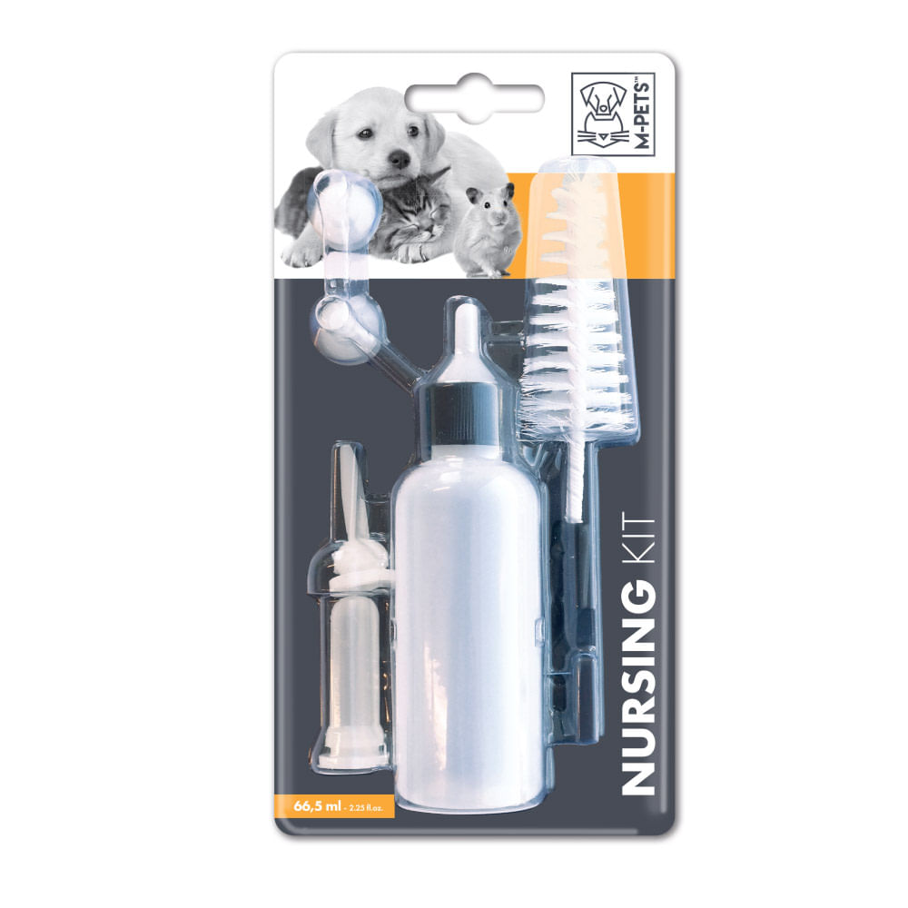 Kit de lactancia (66.5 ml) - Incluye 1 botella, 5 tetinas y 1 cepillo para biberón.; Biberón y tetina diseñados para animales pequeños y recién nacidos como cachorros y gatitos.; También puede utilizarse para alimentar animales enfermos o en recuperación.; Material: Cuerpo: polietileno (PE) - Tapa: polipropileno (PP) - Tetina: silicona - Mango del cepillo: polipropileno (PP) - Cerdas: polietileno (PE) - Cabezal del cepillo: alambre y nailon.