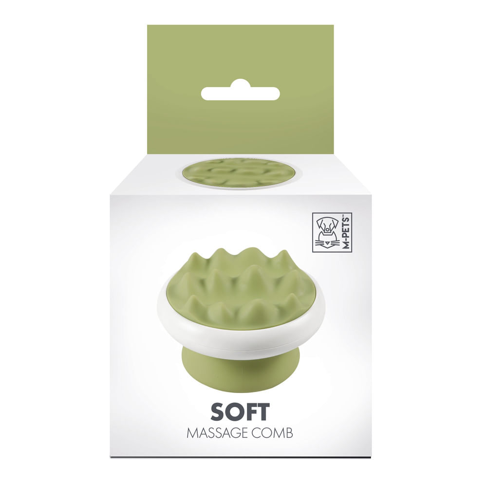 Peine de masaje diseñado para el cuidado diario del pelaje de la mascota.; Sus dientes de silicona permiten masajear suavemente mientras ayudan a remover los pelos sueltos de la superficie.; Ofrece una sensación agradable sin causar molestias ni dañar el pelo.; Medidas:; 8 × 5.4 cm.; Beneficios:; Control manual cómodo y fácil de sujetar.; Dientes de silicona suaves y flexibles.; Ayuda a retirar el pelo suelto.; Masajea sin causar irritación.; Material:; ABS y TPE.