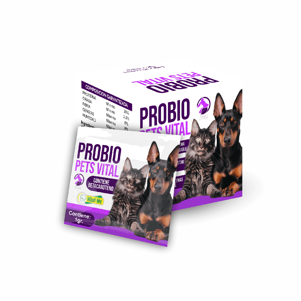 | Descripción | Suplemento probiótico que favorece el equilibrio y bienestar intestinal, fortalece sistema inmunologico y mejora problemas gastrointestinales ocasionados por antibioticos, estrés y cambios en la dieta. INDICACIONES DE USO Administrar 1 sobre diario sovbrre el alimento. PRECAUCIONES Seguir indicaciones de uso. No utilizar este producto en especies diferentes a las recomendadas. Manténgase fuera del alcance de los niños. Manténgase en un lugar fresco, seco y protegido de la luz.; Beneficios:; Probio Pets Vital, es un probiotico que promueve un sistema inmunologico saludabe, ayudnado a equilibrar el bienestar intestinal y es coadyuvante en problemas digestivos.; Modo de uso:; Probio Pets Vital contiene bromatológico digesto animal (Hidrolizado de higado de pollo y/o pavo), Betacaroteno, Enterococcus faecium, lodato de calcio, L- ascorbil-2-polifosfato, Levadura seca de cervecería activa, Pancreatina, Proteinato de zinc, Sal, Selenito de sodio, Sulfato ferroso, Taurina, Vitamina E (Alfa Tocoferol Acetato).; Ingredientes:; Seguir todas las indicaciones de uso.No utilizar este producto en especies diferentes a las recomendadas. Manténgase fuera del alcance de los niños .Manténgase en un lugar fresco, seco y protegido de la luz directa del sol.; |