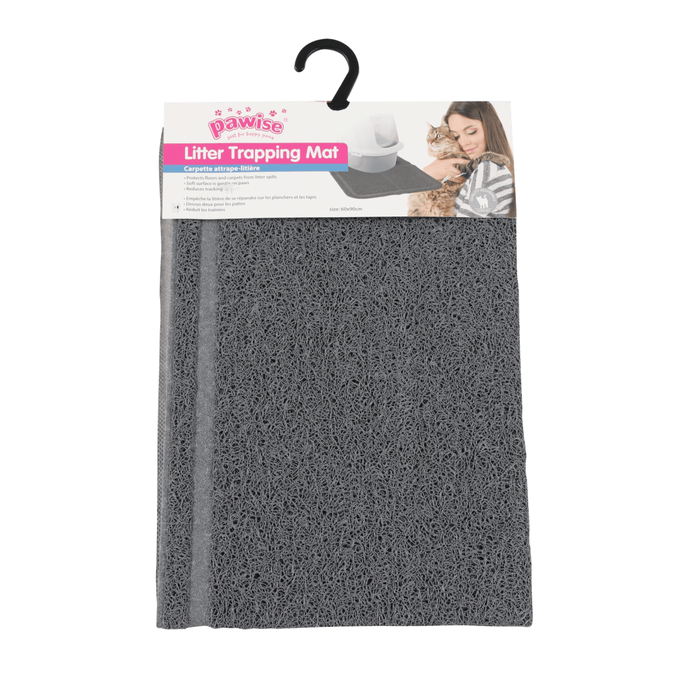 Tapete atrapa arena para gato Pawise; Dimensiones: 60 x 90 cm; Mantén tu hogar limpio y libre de rastros de arena con el tapete atrapa arena Pawise, diseñado especialmente para colocarse frente a la bandeja sanitaria de tu gato; Con un tamaño amplio de 60 x 90 cm, ofrece una cobertura generosa para recoger los residuos de arena que suelen quedar en las patas de tu felino después de usar su arenero; Gracias a su superficie texturizada, atrapa eficazmente la arena suelta, evitando que se disperse por el suelo; Fabricado en materiales suaves, resistentes y fáciles de limpiar, brindando comodidad a tu gato al pisarlo; Características destacadas: Superficie texturizada que atrapa la arena; Suave para las patas, ideal para uso diario; Base antideslizante que evita movimientos; Fácil de limpiar con aspiradora o enjuague; Uso recomendado: Colocar debajo o frente al arenero para mantener la limpieza del entorno; El tapete Pawise atrapa arena es una solución práctica y eficaz para reducir la suciedad y facilitar la rutina de limpieza en hogares con gatos.